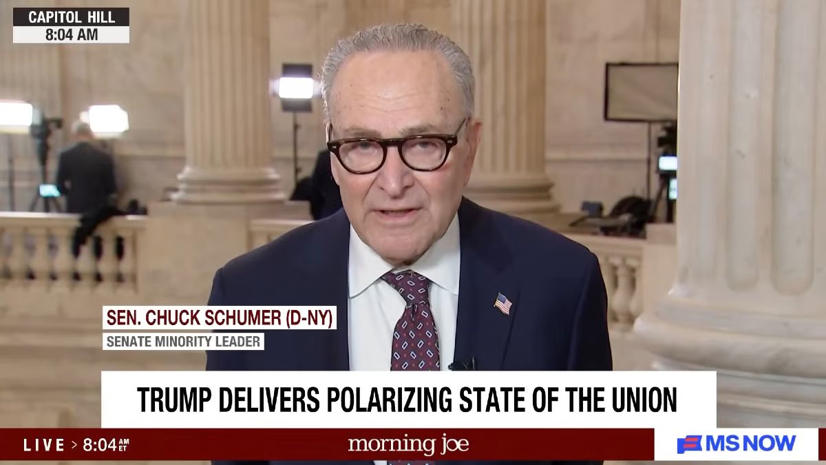 Il leader della minoranza al Senato Schumer è apparso nell’edizione di mercoledì di “Morning Joe” e ha criticato il discorso sullo stato dell’Unione del presidente Trump, definendolo un “completo fallimento”.