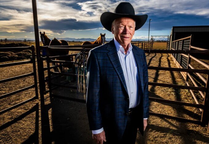 George Eidsness, che è stato insignito del premio The Citizen of the West dal National Western Stock Show, posa per un ritratto nel suo ranch, il Flying E Ranch a Fort Lupton, lunedì 24 novembre 2025. (Brice Tucker/Staff Photographer)