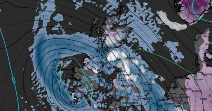 L’Inghilterra si prepara alle forti nevicate nei prossimi giorni L’ultima mappa mostra che la neve coprirà l’intero Regno Unito, con 19 città da tenere d’occhio per le condizioni meteorologiche invernali. Il muro di neve proveniente dall’Oceano Atlantico si estenderà per più di 200 miglia e si sposterà rapidamente attraverso il paese. Le mappe di WXCHARTS mostrano macchie di neve. che è indicato in bianco Colpirà il Regno Unito martedì 27 gennaio a mezzogiorno. galles del nord Tutta l’Irlanda del Nord e parti della Scozia vedranno fino a 55 cm di neve. In Inghilterra, Cumbria, Manchester, Birmingham, Liverpool, Blackpool e Yorkshire. vedrà la neve