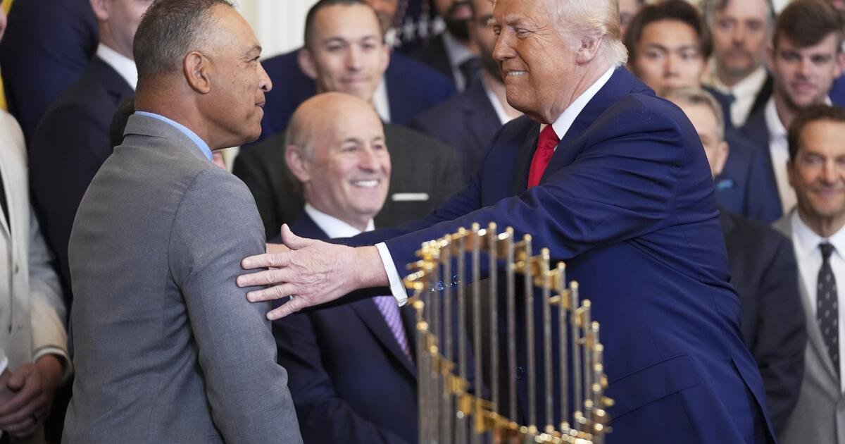 Il manager Dave Roberts, che ha accennato Il Times commenta nel 2019 Forse non sarebbe andato alla Casa Bianca se Trump fosse stato presidente, ma ha partecipato all’evento dell’anno scorso.