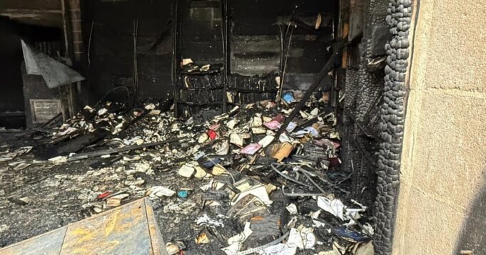 Lunedì il nastro giallo della polizia ha bloccato l’ingresso all’edificio della sinagoga, che era circondato da vetri rotti e vetri. Un mazzo di fiori è stato deposto a terra all’ingresso dell’edificio, con incluso un biglietto che diceva: “Mi dispiace tanto”.