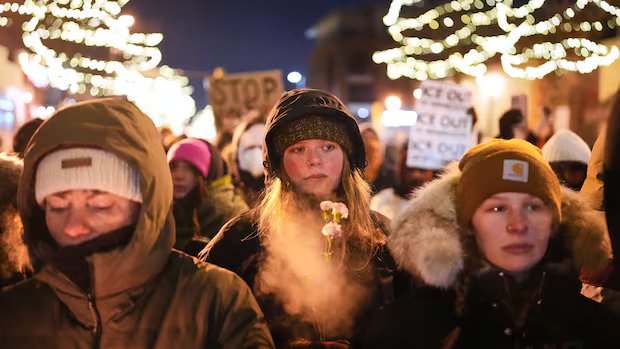 A Minneapolis, i manifestanti si sono radunati sul luogo della sparatoria nonostante il clima pericolosamente freddo con temperature intorno ai -21 gradi Celsius.