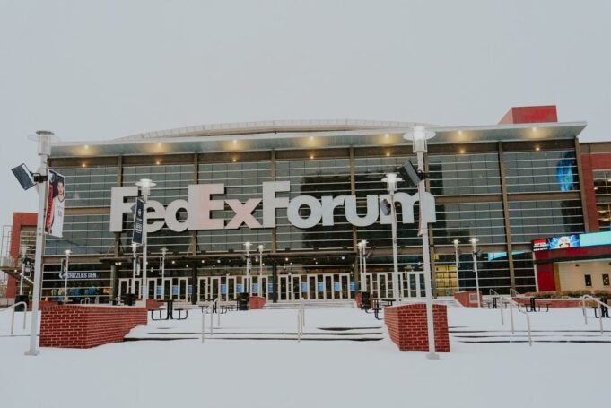 FedExForum è visto nel centro di Memphis il 24 gennaio 2026, dopo che una tempesta invernale ha portato neve, nevischio e ghiaccio nel centro-sud. Si prevedeva che l’esplosione invernale sarebbe continuata fino al 26 gennaio.